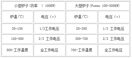 新筑成的或長期不使用的爐子在使用前需要干燥,干燥溫度為100-200℃。大型爐子干燥時間長,最好使用其它發(fā)熱元件烘爐,以免硅鉬棒低溫氧化,爐子烘干后,即可按以下步驟起動升溫。
